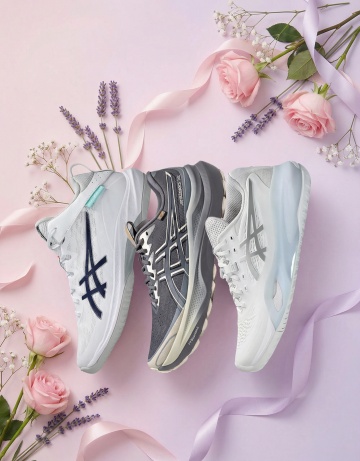 轻拟物风与虚拟自然融合,三双运动鞋置于繁花之中,清新柔美,尽显优雅时尚与浪漫温馨的视觉盛宴。