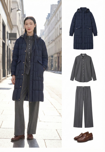 一系列保持相同摄影风格和构图的人物形象组合,纯色背景,整体色彩变换,画面中为同一个束发女性以规整排布的方式展示不同穿搭,每套穿搭均包含长款宽松外套、休闲长裤和单肩包,人物保持侧身行走姿态,衣物材质呈现自然的褶皱和垂坠感,光影柔和,边缘清晰,整体呈现简约、舒适、文艺的穿搭风格,所有元素整齐排列形成系列感。