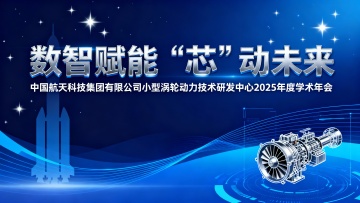 数智赋能 “芯”动未来 ----中国航天科技集团有限公司小型涡轮动力技术研发中心2025年度学术年会 横版会标 背景图为具有科技感的蓝色背景,银色字幕,字幕在图片居中位置,背景有航天火箭、小型涡轮发动机叶片元素,尺寸比例为16:9