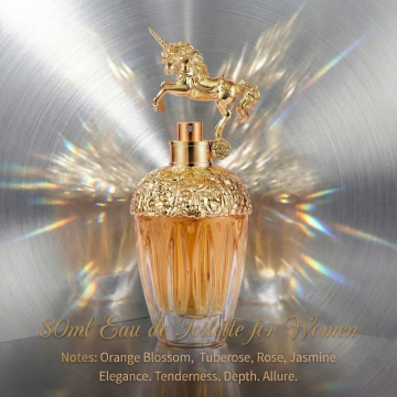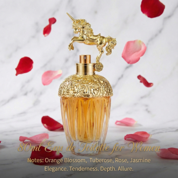 为这款80ml女士淡香水,生成6张宣传海报,图片尺寸比例1:1,高级调性,符合欧美审美,海报上的文案是英文,不能有中文,图片中的盒子删掉,只保留瓶子,不要改变产品本身的造型,贴合产品卖点,卖点参考以下:这款香水是女士香水,容量80ml,香调包括橙花、晚香玉、玫瑰茉莉等,象征温柔与优雅,深邃与诱惑