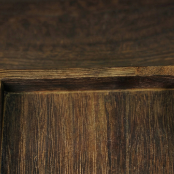 深棕色木纹背景,纹理自然流畅,呈现出清晰的年轮和细腻的木纤维走向,整体色调均匀,带有温暖沉稳的自然质感,木质表面光滑,光影柔和,展现出实木特有的古朴与雅致。