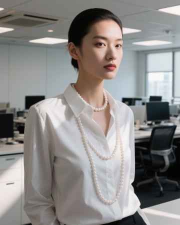 V领干练白色西装插兜女性职业形象照