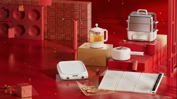 喜庆红金配色,3D重拟物风格呈现透明礼盒与金属质感电饭煲,融合鎏金风与科技感,突出双11促销氛围,强化现代感与视觉冲击力。