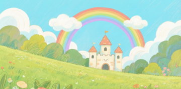 清新插画风,卡通人物拟人化坐在花上阅读,波普艺术色彩鲜艳,充满童趣。