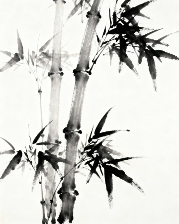 中国传统水墨画风格,浓淡不一的墨色描绘,笔触挥洒自如、写意流畅,留白意境悠远;画面主体为形态挺拔舒展的竹枝竹叶,竹竿劲健,叶片或疏或密,墨色层次分明,展现出竹子的清雅气节,竹叶以浓墨勾勒轮廓,淡墨渲染层次,竹枝交错自然,整体构图疏密有致,气韵生动,保持水墨特有的空灵与韵味。