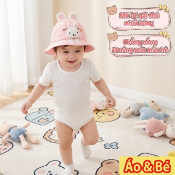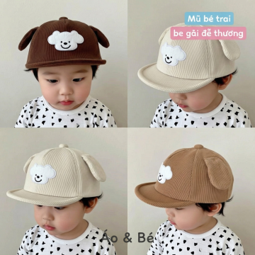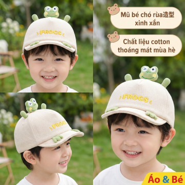 3. 卖点标签:右上角添加2个越南语标签(如“Mũ 2 mặt bé trai/be gái”“Chống nắng thoáng mát mùa hè”),字体萌系风格且不遮挡帽身装饰;