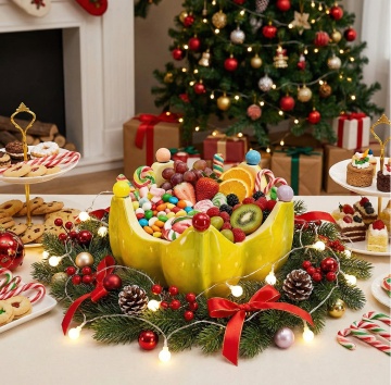 主体:立体毛绒圣诞蛋糕(三层结构,底层红绒、中层白绒、顶层绿绒,表面缀毛绒糖霜、毛绒彩球、毛绒星星);点缀:毛绒餐垫(奶白短绒,绣圣诞花纹)铺在桌面,摆 1 个迷你毛绒圣诞帽、1 串小毛绒彩灯;甜品:1 个迷你毛绒苹果派(红绒表层,“苹果块” 是红绒拼接,铺白绒奶油边),放蛋糕旁;场景:星光灯 + 暖黄主光结合,照亮蛋糕绒面蓬松感,背景是局部毛绒墙面(仅圣诞装饰区域裹绒),氛围梦幻聚焦主体