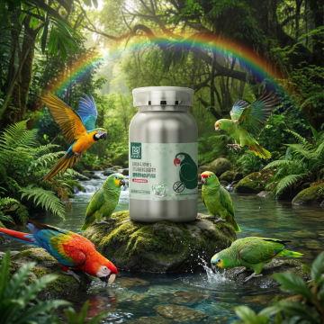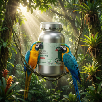 用给出的商品图片生成10张自然栖息地场景:以热带雨林为背景,出现几只鹦鹉鸟在产品附近,产品稍微大一些高清一些,图片为800×800像素尺寸