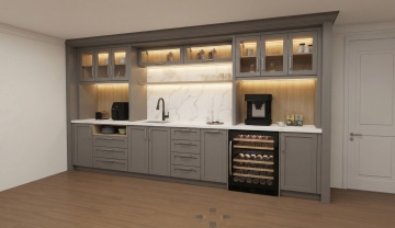 现代简约风边柜,融合性冷淡与轻拟物设计,弧形玻璃门与柔和配色营造温馨舒适感,搭配抽象画作与自然元素,展现文艺氛围。