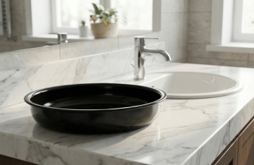 我是一名设计师,这是一套洗漱用品,请给他换一个卫生间洗漱台的场景图,突出产品的使用,产品是主体,将他们分开摆放