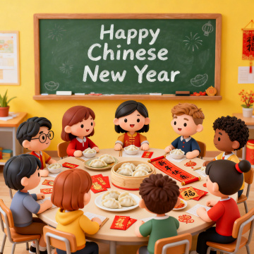 卡通感插画风,师生互动温馨场景,色彩明亮,节日氛围浓厚。