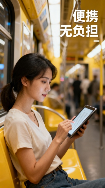 创作一张照片,表现中国的地铁车厢里的场景,人不要挤满车厢,大约有一半的人就行了。有的人站着,有的人坐着,但是大家都在低头看手机。男性与女性各约50%。一个六七岁左右的小男孩,戴眼镜,身穿橘色衣服,背对镜头站在前景的车厢中间,疑惑地抬头望着这些低头看手机的大人们。