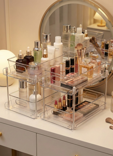 现代简约家居风格的亚马逊主图,明亮洁净的浴室场景,3/4侧面中央放置黑色纹理金属置物架。顶层挂2-3条蓬松大浴巾和小毯子,中层叠放整齐毛巾,下层放置2个5加仑水桶,侧面挂钩挂衣物刷。置物架底部轮子清晰可见,其中一个微微离地。金属杆和轮子上有微小水珠特效,突出防潮防锈特性。背景为浅灰色瓷砖墙和白色洗手台,整体光线明亮柔和,突出产品高端质感与实用功能。