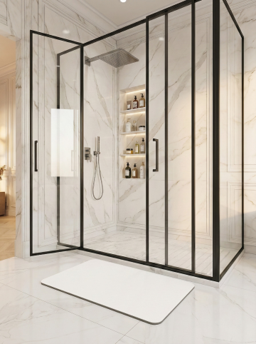 六个卫生间标识图标系列设计,每个图标均采用极简主义风格,黑色人形剪影与白色纯色背景形成强烈对比,包含男性、女性、无障碍设施、家庭卫生间、母婴室及性别中立卫生间六种不同功能的卫生间符号,所有图标造型简洁规整,线条流畅无装饰,保持一致的视觉语言和比例尺寸,呈规整网格状排布,整体设计符合公共标识系统的易识别性和统一性要求。