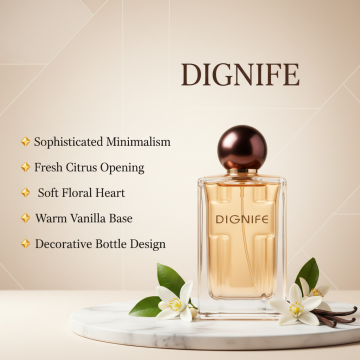 为这款60ml女士香水,生成7张宣传海报,含人像展示图,卖点集合图(卖点列表展示),场景使用图,香调图,调性图,图片尺寸比例1:1,高级调性,符合欧美审美,海报上的文案是英文,不能有中文,贴合产品卖点,卖点参考以下: 1. 客群卖点 精准匹配 25-40 岁「偏爱轻奢优雅感」的都市轻熟女 —— 职场精英 / 生活品质派,拒绝浓烈张扬,更爱 “低调有质感、温柔有层次” 的香调,追求不费力的高级氛围。 2. 香味卖点 「清新转柔暖的轻奢层次香」: 前调橙花 + 柑橘:开场是明亮清爽的果香花香,像清晨剥开鲜橙的通透感,不甜腻不冲鼻; 中调薰衣草 + 橙花:延续橙花的柔,叠上薰衣草的舒缓松弛,是温柔包裹的柔和过渡; 后调香草 + 龙涎香:香草添暖润甜感,龙涎香衬出高级余韵,淡却有记忆点,柔而不寡淡。 3. 外观卖点 「轻奢质感的 “桌面装饰级” 香水瓶」: 透明纹理瓶身 + 深棕珠光瓶盖 + 金色细节,低调奢华有格调,既是香水瓶,也是桌面 / 梳妆台的精致摆件; 60ml 适中尺寸,日常补香便携,摆置收藏也尽显质感。 4. 调性卖点 「优雅松弛的轻熟氛围感」:没有攻击性的浓烈香调,是 “清新开场→舒缓过渡→暖润收尾” 的温柔层次,自带轻奢松弛感,衬出轻熟女的优雅底气。 5. 适用场景卖点 「全场景适配的 “气质加分香”」:职场通勤:清新不扰人,自带专业优雅感;约会 / 轻社交:柔暖香调衬出温柔氛围;日常独处 / 休闲:后调的暖润感自带治愈松弛感。
