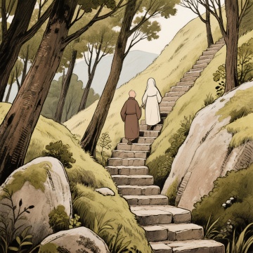 古典中式工笔风,水墨淡雅,师徒共读,山水竹林间,书香四溢。