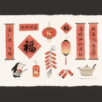 国潮风插画,拟人化孩童手持灯笼嬉戏雪中,屋内全家包饺子,暖黄灯光映衬喜庆温馨,水彩质感与剪纸元素融合,传递除夕团圆乐。