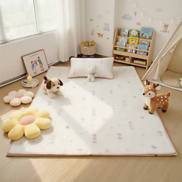 生成三张不同场景的地面保护膜电商主图,面积分别有30,50,70,100,120,120,150平方米,比例1:1,精装耐磨 环保发泡棉 买就送胶带