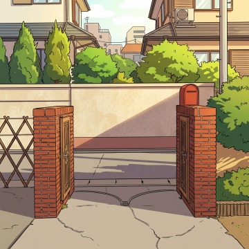 清新水彩风,舒适动漫小屋,绿树环绕,自然惬意。