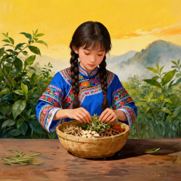 水彩工笔风,清新质朴,描绘女子溪边洗衣,衣衫晾晒,田园风光。