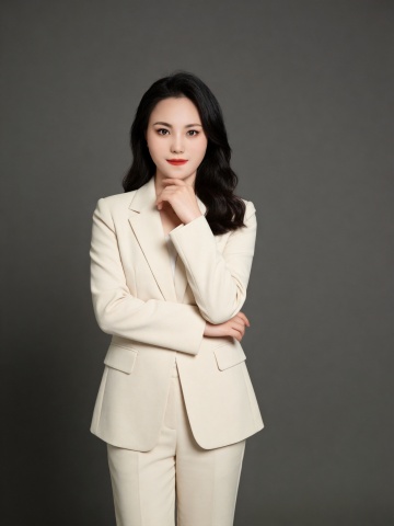 我想换成蓝色的西装,最好是现代化职业女性的感觉,参考韩式肖像照