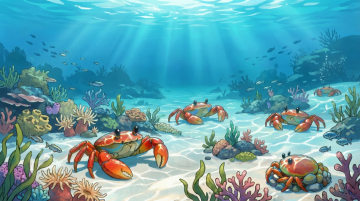 超写实风格水下场景,阳光穿透清澈湛蓝海水形成多束明亮光束,照亮海底五彩斑斓的珊瑚礁生态系统。前景是形态各异的健康珊瑚群落,包括巨大的红色脑珊瑚、橙色扇形珊瑚、紫色鹿角珊瑚和黄色块状珊瑚,珊瑚表面细节丰富,纹理清晰可见。中央区域有一条姿态优雅的蓝白条纹小丑鱼群和几条黄色与黑色相间的蝴蝶鱼,周围环绕着银色闪光的沙丁鱼群和几只色彩鲜艳的鹦鹉鱼,所有海洋生物动态自然,细节精致。背景海水呈现出由浅至深的渐变蓝色,水面有轻微波纹和光斑反射,整体画面光影对比强烈,色彩饱和度高,营造出梦幻而生机勃勃的热带海洋氛围,具有极高的摄影级清晰度和真实感。