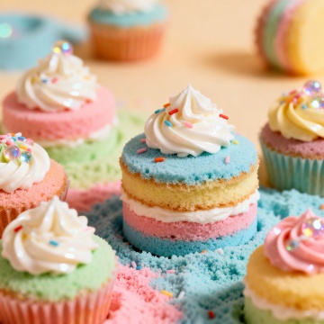 主体:立体毛绒圣诞蛋糕(三层结构,底层红绒、中层白绒、顶层绿绒,表面缀毛绒糖霜、毛绒彩球、毛绒星星);点缀:毛绒餐垫(奶白短绒,绣圣诞花纹)铺在桌面,摆 1 个迷你毛绒圣诞帽、1 串小毛绒彩灯;甜品:1 个迷你毛绒苹果派(红绒表层,“苹果块” 是红绒拼接,铺白绒奶油边),放蛋糕旁;场景:星光灯 + 暖黄主光结合,照亮蛋糕绒面蓬松感,背景是局部毛绒墙面(仅圣诞装饰区域裹绒),氛围梦幻聚焦主体