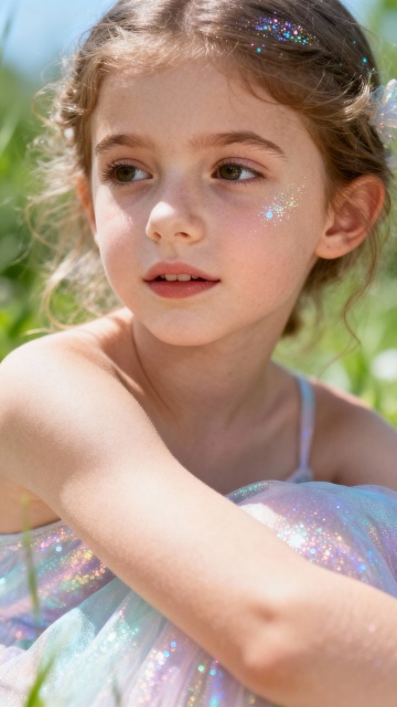 细节补充:皮肤质感细腻通透,发丝带有自然光泽,画面带有轻微的胶片颗粒感