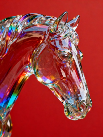 图片风格为印象派,印象派,梵高风格的油画,细腻笔触明显,暖色调。具有印象派、梵高风格的油画,画面以明显的笔触绘制,呈现出独特的艺术质感。画面中是一个由幽灵粒子组成的山海经神兽马的正侧脸(胸像),半透明质感,眼睛炯炯有神,微小的粒子通过C4D建模、OC渲染,展现出通透的质感,边缘呈现出模糊的效果,还带有双重影像的视觉特征,仿佛是通过伽马射线捕捉到的画面,整体以红背景衬托,整体色调喜庆
