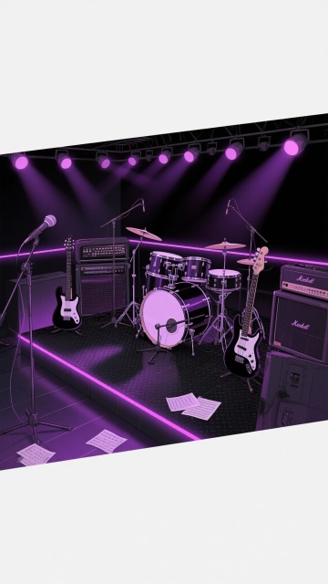 二次元,酒吧乐队,高级简约,细节丰富,紫黑色,氛围是魅惑、下沉,生成2张,不要人,4k