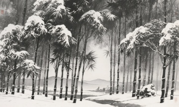 水墨风与工笔技法交融,红枫点缀雪境,山雾缭绕,虚实相生,营造出中式静谧意境,展现冬日里的自然诗意。