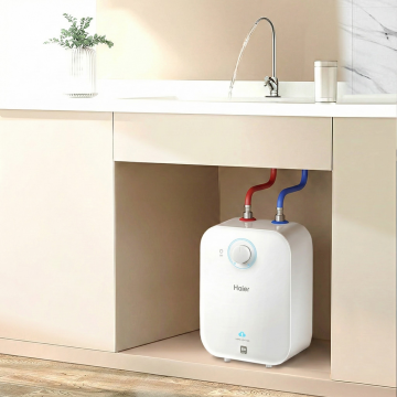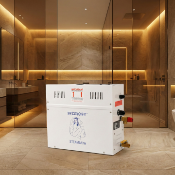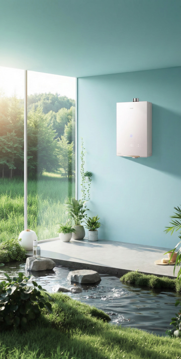 3D渲染风格浴室场景,主色调为纯净的白色与温暖的米色,搭配金色水龙头点缀,柔和的自然光从巨大的落地窗洒入,窗外是壮丽的雪山远景,光线在光滑的地面形成明亮的反光与柔和的阴影。画面中央是一个现代简约风格的白色浴缸,边缘搭着一条白色毛巾,金色水龙头正流出清澈的水。浴缸后方的米色立柱上安装着白色的热水器,下方壁龛内整齐摆放着折叠的白色毛巾和透明瓶身的洗护用品。整体氛围宁静、高端、充满自然光线与开阔视野,展现出极简主义的优雅与舒适。