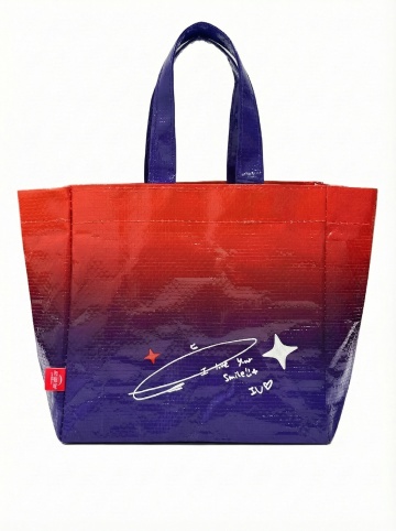 四个不同风格的手提袋设计系列,每个手提袋均为纯色背景,保持手提袋的基本形态和绳制提手设计。第一个手提袋采用波普艺术风格,亮黄色背景,黑色粗线条勾勒的几何图案,造型简约夸张;第二个手提袋为极简主义风格,深蓝色背景,袋身无多余装饰,仅在底部有一条细银色装饰线,造型干净利落;第三个手提袋是复古风,酒红色背景,袋身上有金色的藤蔓花纹刺绣,提手为皮质,造型优雅古典;第四个手提袋为未来主义风格,银色渐变背景,袋身有不规则的透明塑料拼接块,提手为金属材质,造型前卫科技。四个手提袋规整地排列在白色背景上,形成一个完整的系列集合。