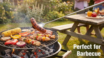 工业风户外灶具,金属质感搭配橙色点缀,科技感火焰显示与光影交织,展现现代机能美学与质朴野营场景的融合。