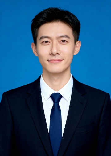 正式西装蓝色领带求职男生蓝底证件照