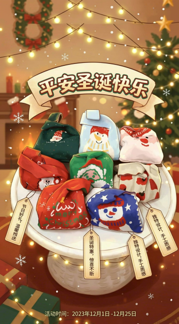 扁平风与剪纸风结合,卡通拟人元素营造喜庆圣诞氛围,金色点缀提升节日感,传递温暖欢乐的圣诞奇妙夜。