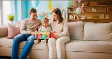 一位穿着白色吊带连衣裙的长发女子斜倚在柔软的米色沙发上,双手高高举起一个穿着白色连体衣的婴儿,婴儿悬空舒展着四肢,两人脸上洋溢着幸福灿烂的笑容。温暖柔和的自然光从窗外洒落,透过轻盈的白色纱帘形成朦胧的光影效果,照亮了整个室内空间。整体画面呈现出温馨、治愈的氛围,采用写实的摄影风格,色彩以柔和的米白色调为主,光影过渡自然,细节清晰,捕捉到母子间亲密互动的美好瞬间。