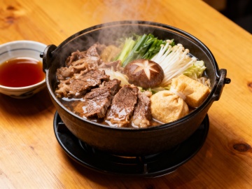 温馨雅致的日式居酒屋餐厅内部场景,原木色与暖棕色为主色调,柔和的暖黄色灯光从木质格栅灯罩中洒下,照亮深色实木餐桌与黑色皮质座椅,墙面装饰着浮世绘风格的木质版画,吧台区悬挂着日式灯笼与复古酒瓶,角落摆放着大型绿植与竹编屏风,地面铺设深色防滑榻榻米纹理地砖,整体营造出古朴静谧又不失现代舒适感的用餐氛围,空间布局开阔通透,桌椅排列整齐有序,细节处点缀着日式传统纹饰与暖光小摆件。