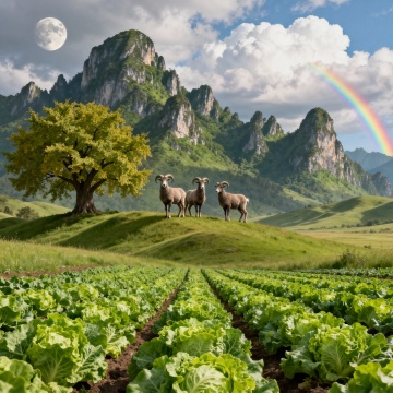 高空航拍视角,在一片被初升朝阳染成金绿色的无垠草原上,数百只雪白的绵羊组成一条如银色河流般蜿蜒的生命轨迹,它们正沿着古老的迁徙路径缓缓前行,每只羊的影子被拉长成流动的黑色丝绸,在晨露闪烁的草叶上织就一幅不断变换的动态纹理。画面右侧,一排姿态各异的古橡树林投下靛蓝色的几何阴影,如同大地的天然画框,将这片生机勃勃的草原温柔地框住。远方地平线处,淡紫色的晨雾与金色的阳光交融,为这幅自然画卷增添了一层梦幻的光晕。整体色调以翡翠绿与珍珠白为主导,点缀着琥珀色的晨光和靛蓝的阴影,光影过渡细腻如丝绸,视觉引导线从画面左下角延伸至右上角,仿佛一条通往天际的生命之路。