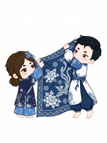 帮我生成一个2个人在宣传的表情包 要有人物动作