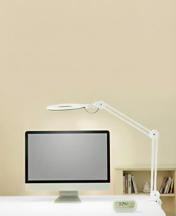 简约现代风格,清新舒适感,书桌与风扇设计体现极简主义美学。