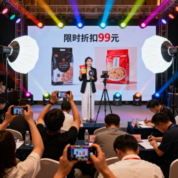 3D充气风大字搭配霓虹灯效,红金配色营造喜庆促销氛围,主播互动引导直播抢红包,视觉冲击力强,节日感十足。