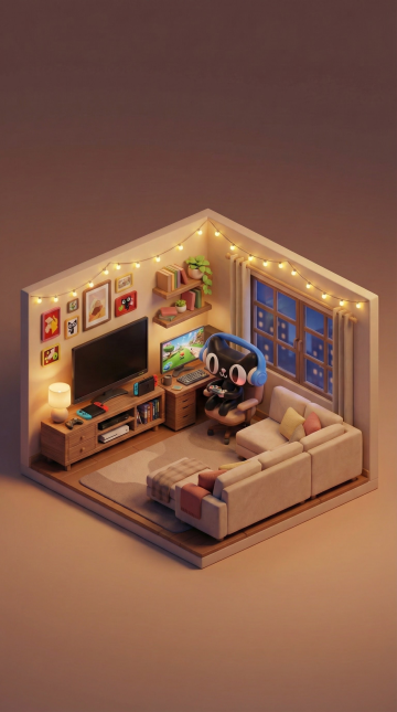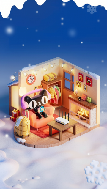 3D卡通风格,拟人化猫咪少女,毛发生长自然,可爱温馨室内场景。