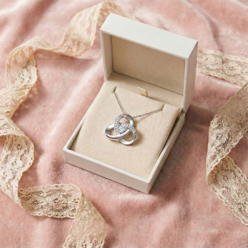 写实珠宝摄影风格,铂金项链吊坠特写,中央镶嵌一颗圆形明亮式切割主钻,周围环绕小钻形成双层环形设计,银色链条自然垂落,钻石具有强烈的火彩和内部闪光,高反光金属质感,柔和侧逆光营造出清晰的阴影和高光层次,背景替换为蓝色天鹅绒质地,表面有细腻的光泽纹理,整体画面呈现奢华、精致、高雅的氛围,焦点锐利集中在吊坠,链条和背景有轻微虚化,突出珠宝的璀璨光芒和细节质感。