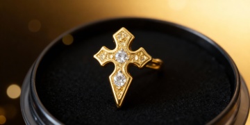 超写实珠宝摄影风格,保持戒指款式不变,具有高反光金属质感,柔和侧逆光营造出清晰的阴影和高光层次,背景替换为黑色天鹅绒质地,表面有细腻的光泽纹理,整体画面呈现奢华、精致、高雅的氛围,焦点锐利集中在戒指,背景有轻微虚化,突出珠宝的璀璨光芒和细节质感。