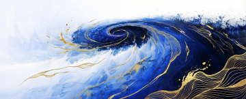 中国传统风格的抽象流体艺术,以深邃的藏蓝色为背景,点缀着流动的金色、赭红色和米白色云纹图案,金色线条勾勒出飘逸的曲线和漩涡状纹理,色彩过渡自然柔和,整体呈现出华丽而神秘的东方韵味,具有浓厚的水墨晕染质感和金属光泽,画面层次丰富,流动感强,营造出庄重典雅又富有动感的视觉效果。