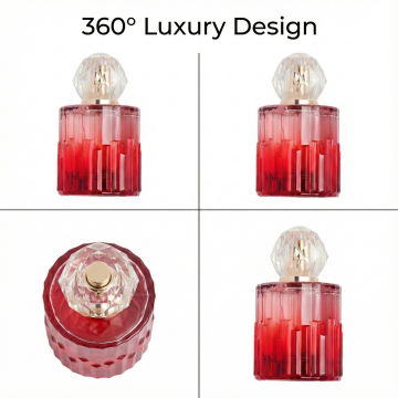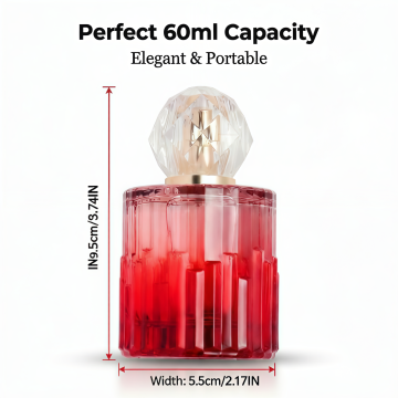 为这款60ml女士香水,生成7张宣传海报,含人像展示图,卖点集合图(卖点列表展示),场景使用图,香调图,调性图,不要白底图,图片尺寸比例1:1,高级调性,符合欧美审美,海报上的文案是英文,不能有中文,贴合产品卖点,卖点参考以下: 1. 客群卖点 精准匹配 25-35 岁「精致优雅气场派」都市女性 —— 偏爱轻奢华丽质感,既痴迷花香调的柔美氛围,又想要香调带点利落气场,拒绝平庸甜腻的风格。 2. 香味卖点 「清新转柔美的华丽层次香」: 前调黑加仑 + 葡萄柚:以清爽浆果果香开场,消弭传统花香调的甜腻感,开篇自带利落轻盈; 中调玫瑰 + 茉莉:叠出馥郁柔美的花香核心,是精致女性的标志性柔美感,不寡淡不张扬; 后调香草 + 柏木:用香草暖化柔香,柏木添利落木质调,让香调 “柔而不飘”,收尾自带优雅气场。 3. 外观卖点 「轻奢摆件级红晶香水瓶」: 红水晶切割瓶身 + 透明钻面瓶盖 + 金色细节,华丽又精致,摆在梳妆台既是香水瓶,也是颜值装饰摆件; 60ml 容量兼顾日常补香需求与收藏质感,补香时掏出自带轻奢精致感。 4. 调性卖点 「优雅带气场的柔美轻奢感」:没有廉价甜香的软塌感,是 “华丽红晶瓶裹着清柔花香” 的精致特质 —— 清新开场衬利落、柔美中调显优雅、暖质后调撑气场,适配女性多场合的气质切换。 5. 适用场景卖点 「多场合适配的精致气场香」: 职场通勤:清柔香调不扰人,华丽瓶身补香显质感; 约会 / 轻社交:柔美花香衬出优雅氛围; 晚宴 / 重要场合:红晶外观 + 层次香调,撑得起精致气场。