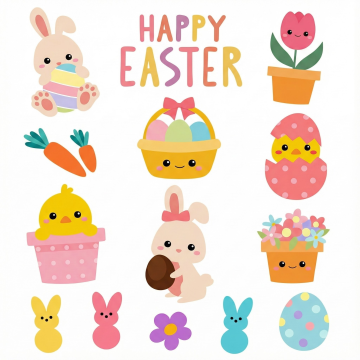 可爱卡通动物拼贴设计,拟人化小猫、小狗、老鼠与狐狸,身穿彩色服饰,展现温馨趣味感,面料质感与扁平风格结合,适合节日装饰。