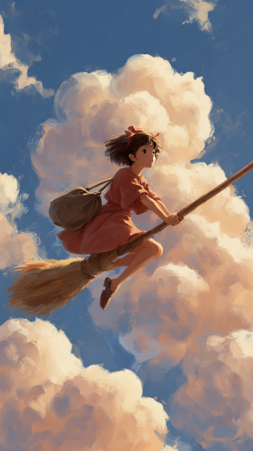清新插画风,少女骑车穿行麦田,夕阳洒落,尽显夏日田园浪漫。