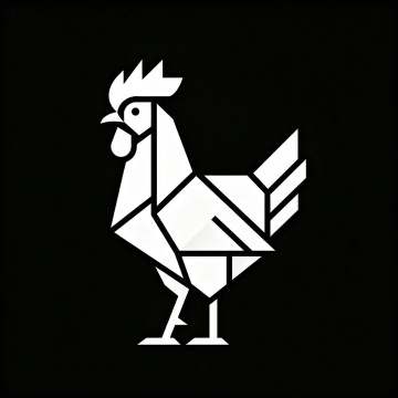 现代感扁平风设计,简洁几何鸡形图案,黑白对比鲜明。